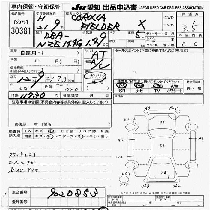 TOYOTA COROLLA FIELDER - лот 30381