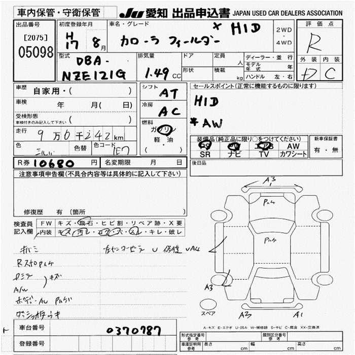 TOYOTA COROLLA FIELDER - лот 5098