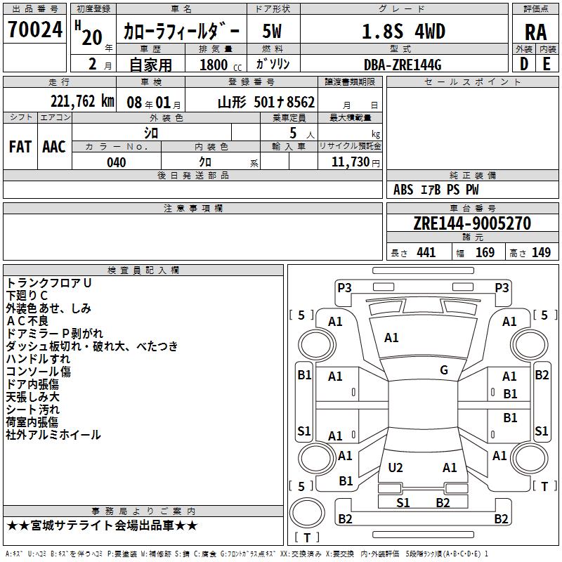 TOYOTA COROLLA FIELDER - лот 70024