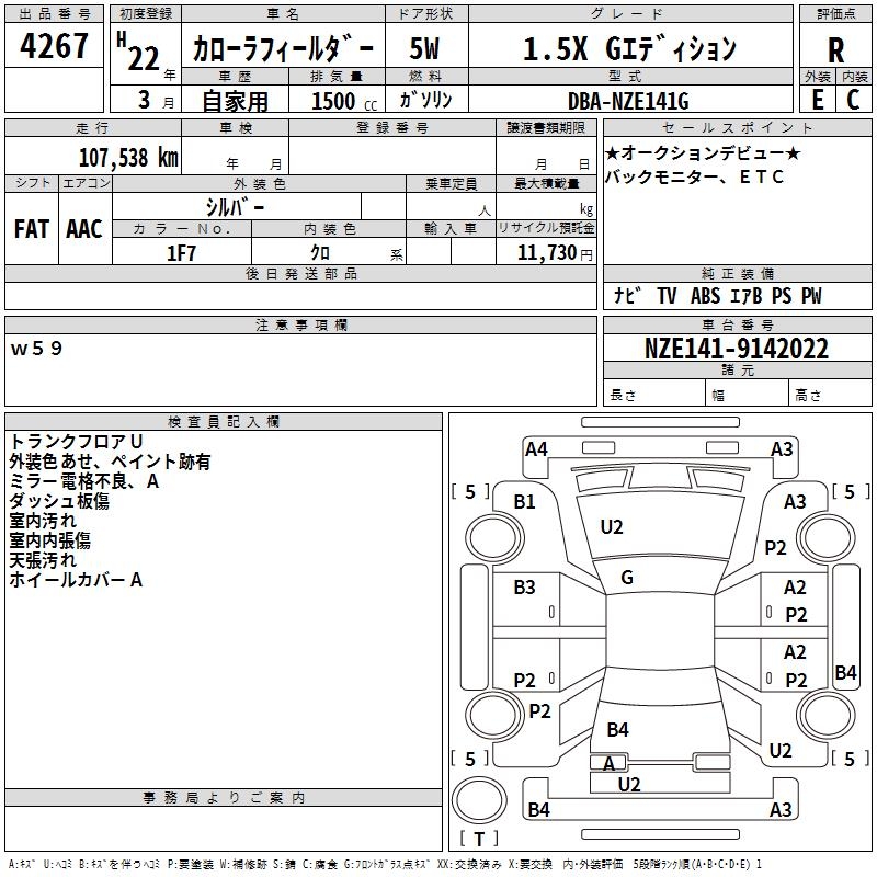 TOYOTA COROLLA FIELDER - лот 4267