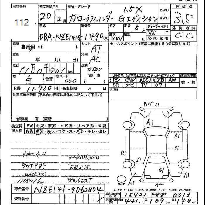 TOYOTA COROLLA FIELDER - лот 112