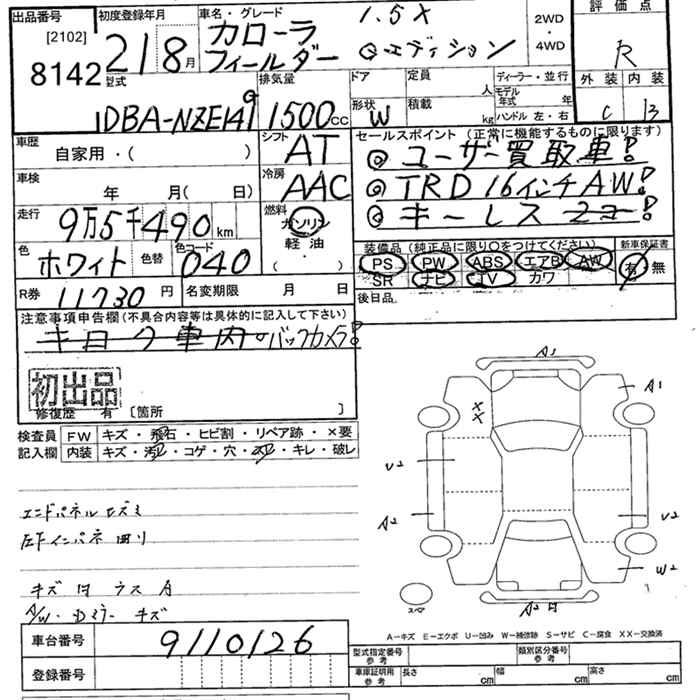 TOYOTA COROLLA FIELDER - лот 8142