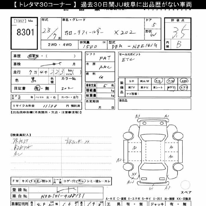 TOYOTA COROLLA FIELDER - лот 8301