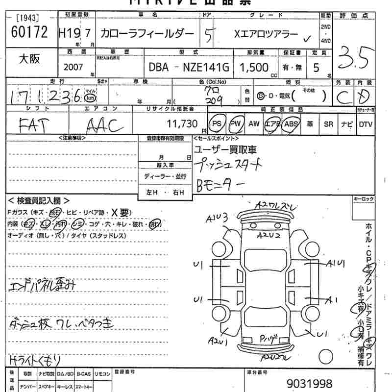 TOYOTA COROLLA FIELDER - лот 60172