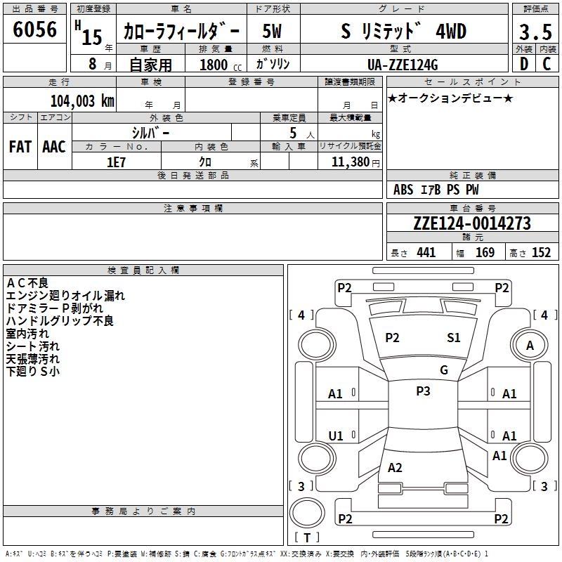 TOYOTA COROLLA FIELDER - лот 6056