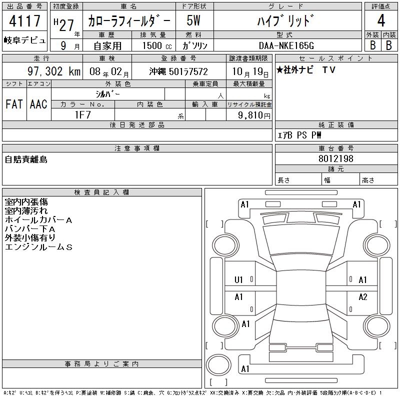 TOYOTA COROLLA FIELDER - лот 4117