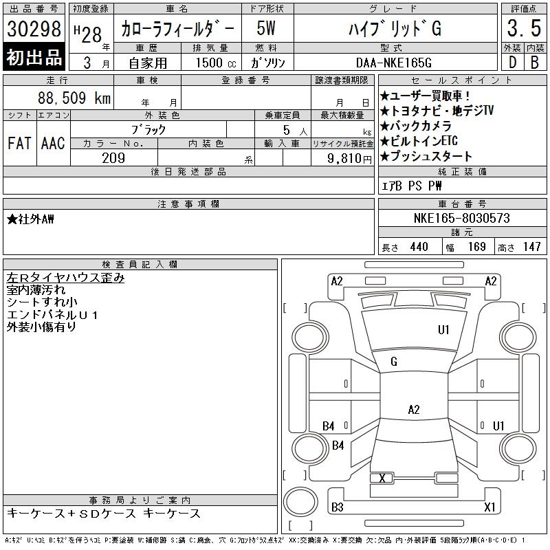 TOYOTA COROLLA FIELDER - лот 30298