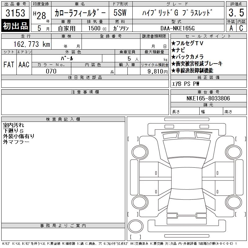 TOYOTA COROLLA FIELDER - лот 3153