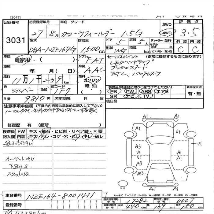 TOYOTA COROLLA FIELDER - лот 3031