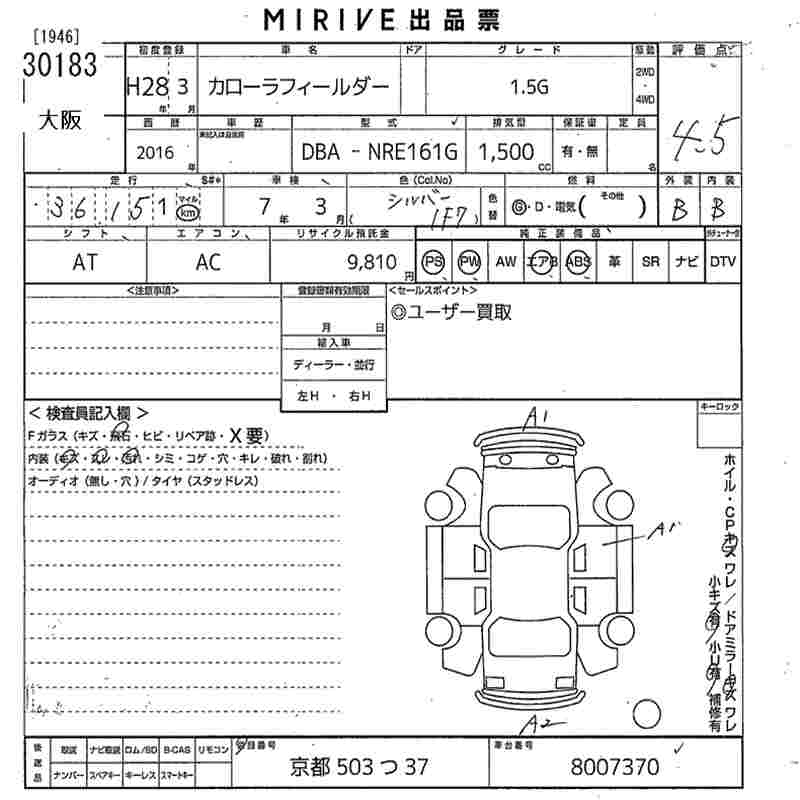 TOYOTA COROLLA FIELDER - лот 30183