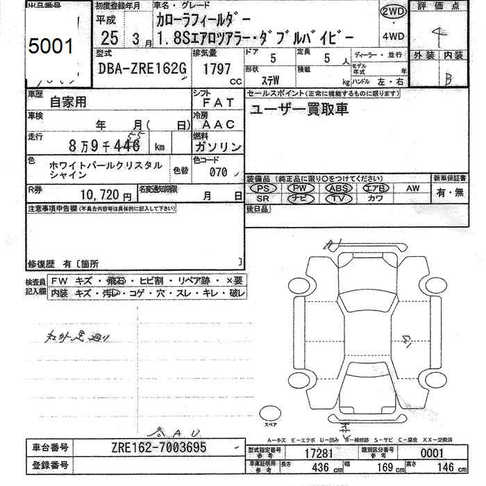 TOYOTA COROLLA FIELDER - лот 5001