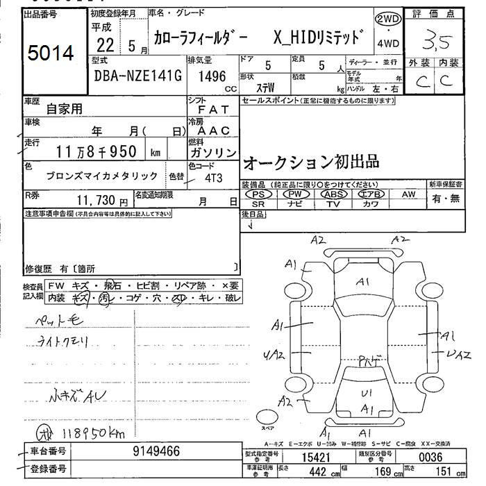 TOYOTA COROLLA FIELDER - лот 5014