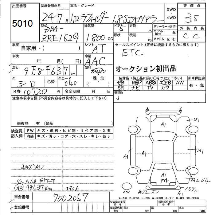 TOYOTA COROLLA FIELDER - лот 5010