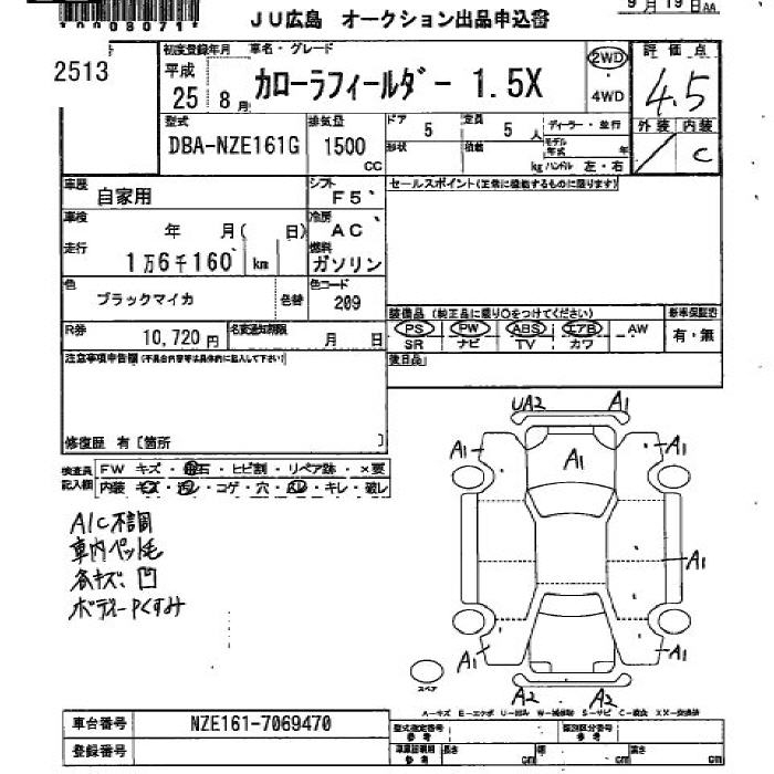 TOYOTA COROLLA FIELDER - лот 2513