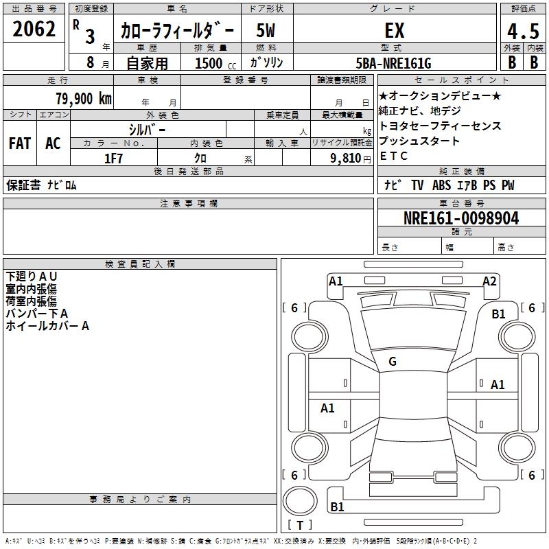 TOYOTA COROLLA FIELDER - лот 2062