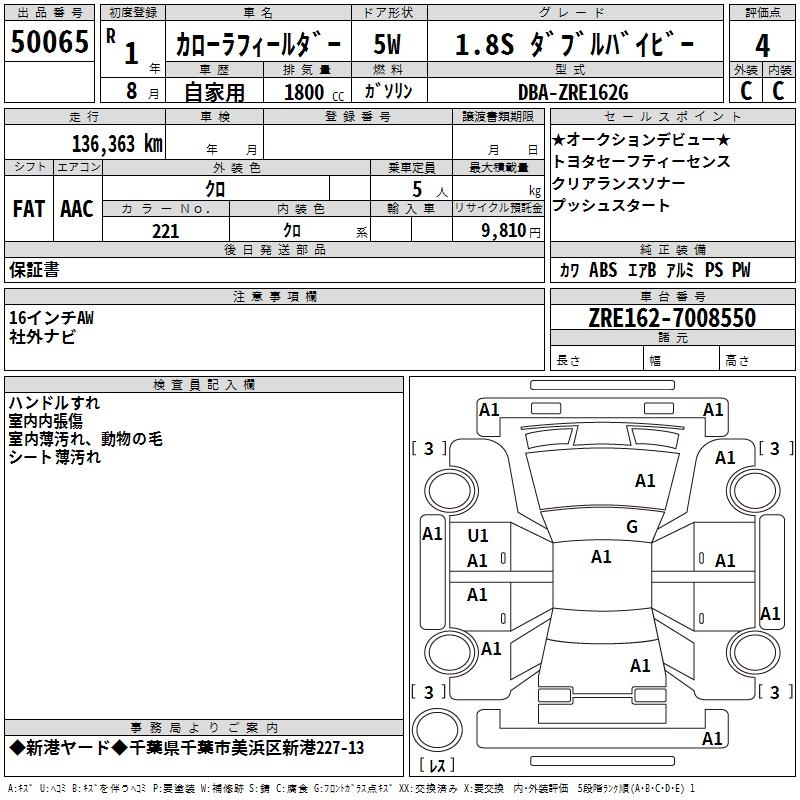 TOYOTA COROLLA FIELDER - лот 50065
