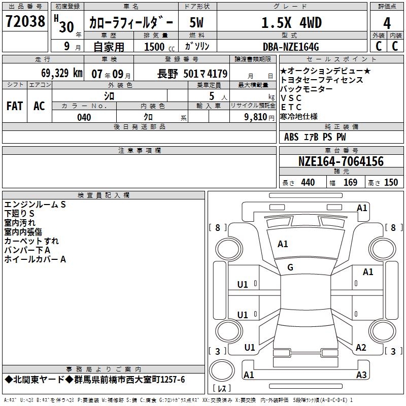 TOYOTA COROLLA FIELDER - лот 72038