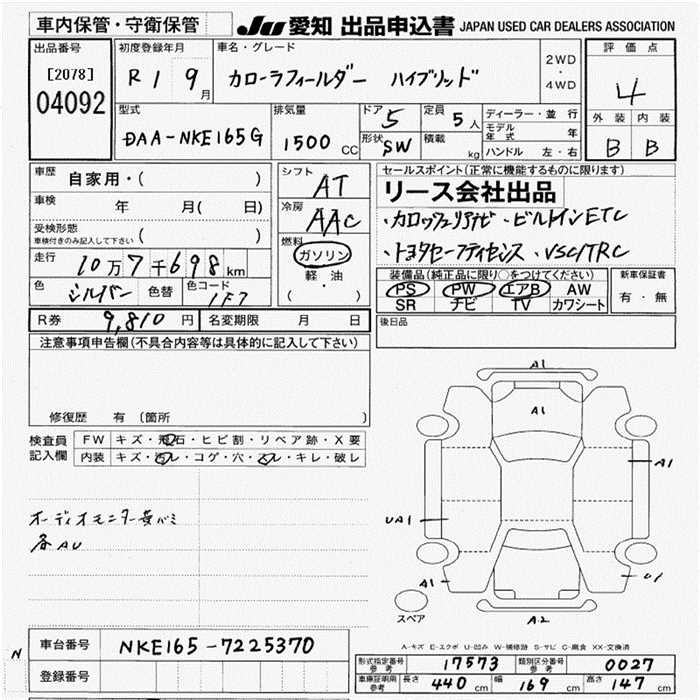 TOYOTA COROLLA FIELDER - лот 4092