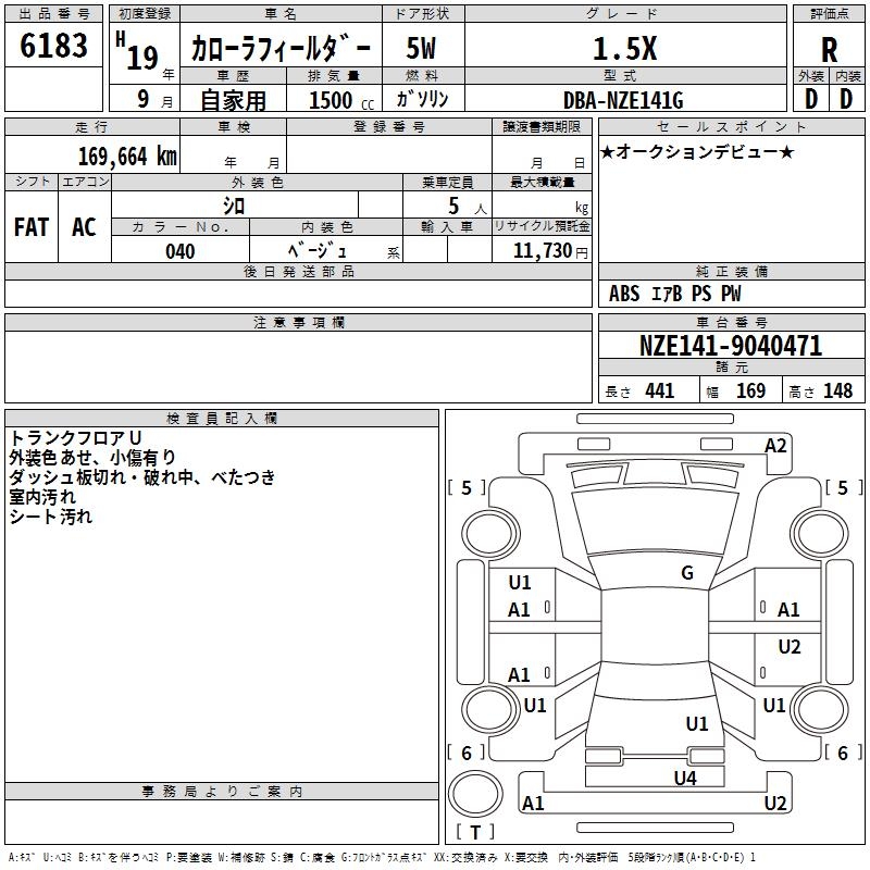 TOYOTA COROLLA FIELDER - лот 6183