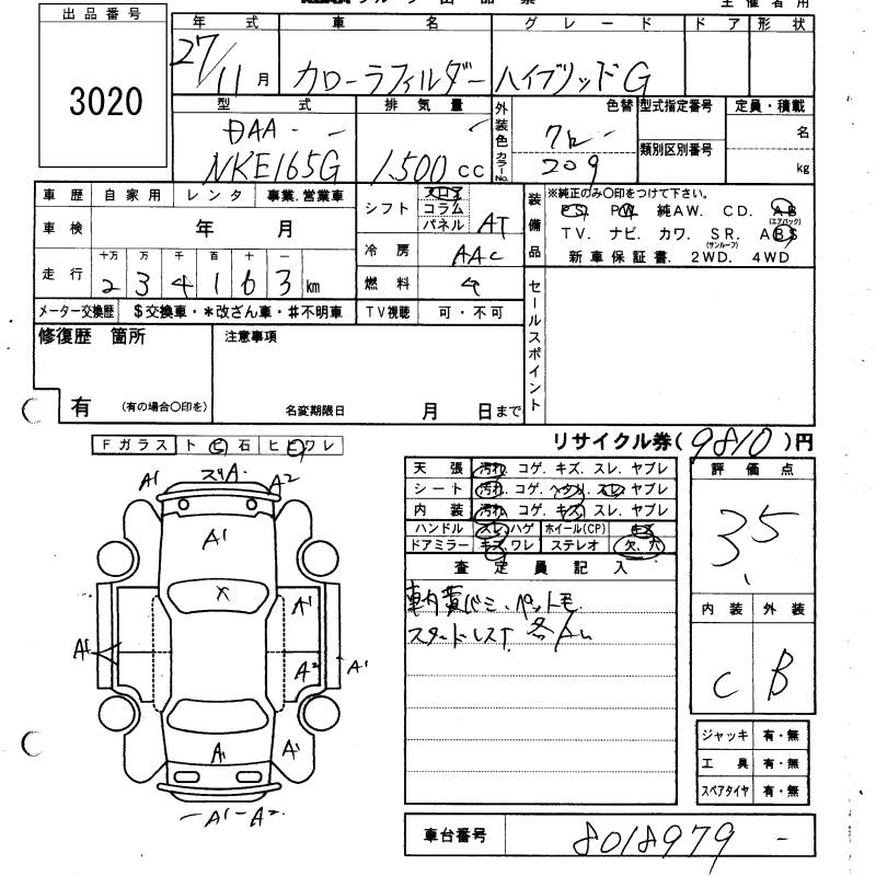 TOYOTA COROLLA FIELDER - лот 3020