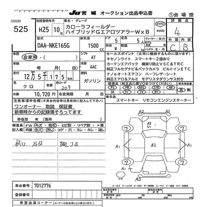 TOYOTA COROLLA FIELDER - лот 525