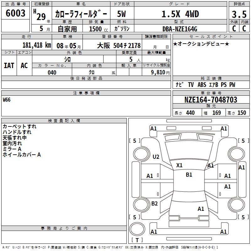 TOYOTA COROLLA FIELDER - лот 6003