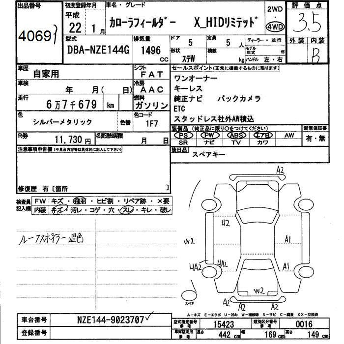 TOYOTA COROLLA FIELDER - лот 4069