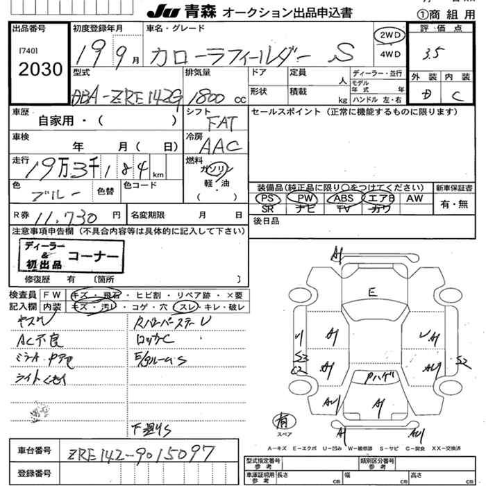 TOYOTA COROLLA FIELDER - лот 2030