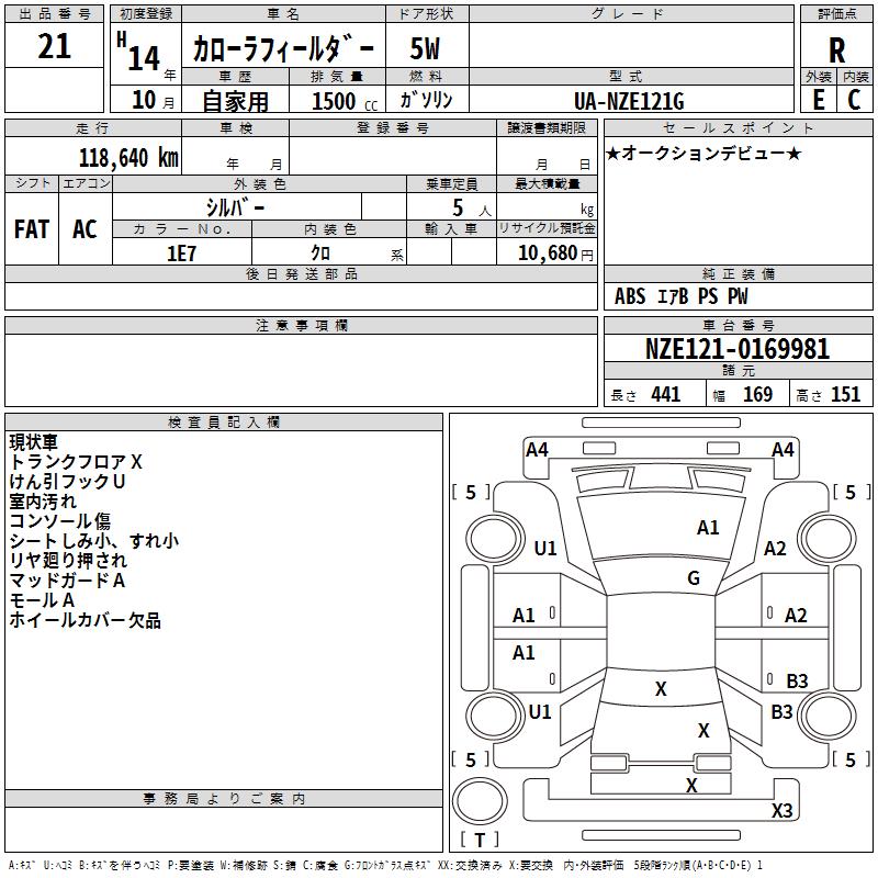 TOYOTA COROLLA FIELDER - лот 21
