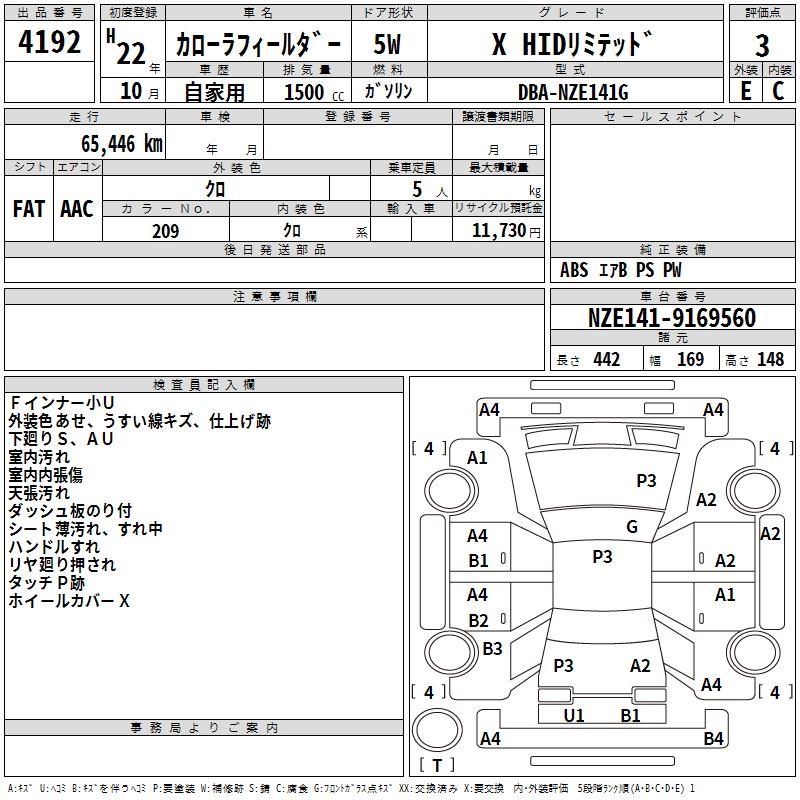 TOYOTA COROLLA FIELDER - лот 4192
