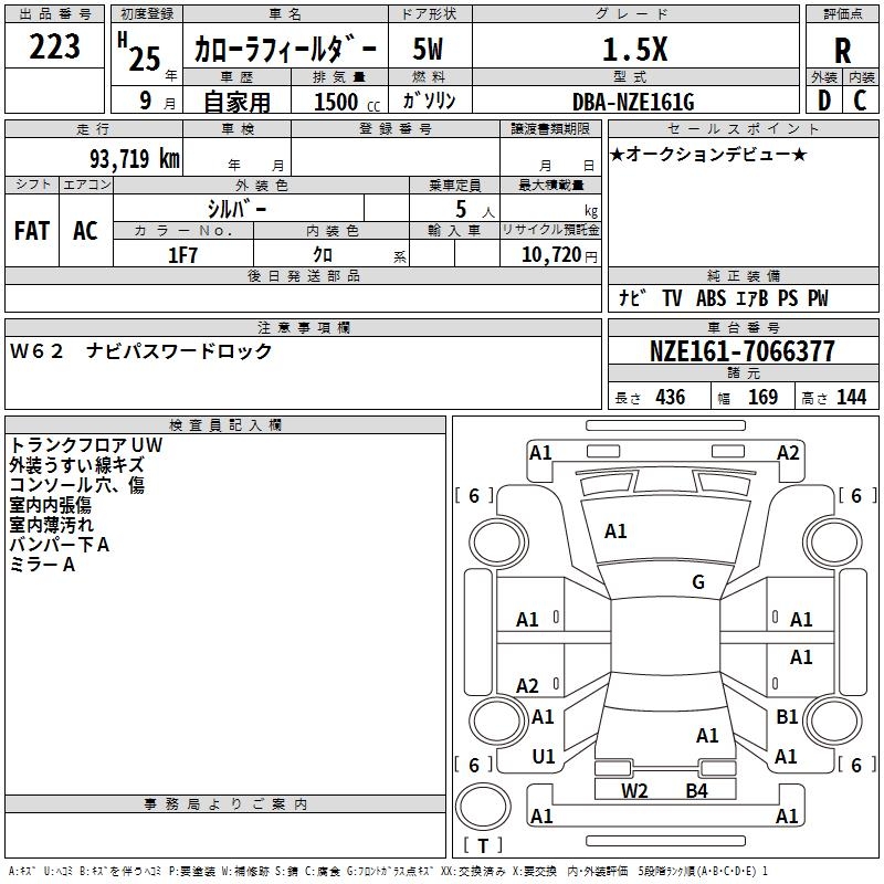 TOYOTA COROLLA FIELDER - лот 223