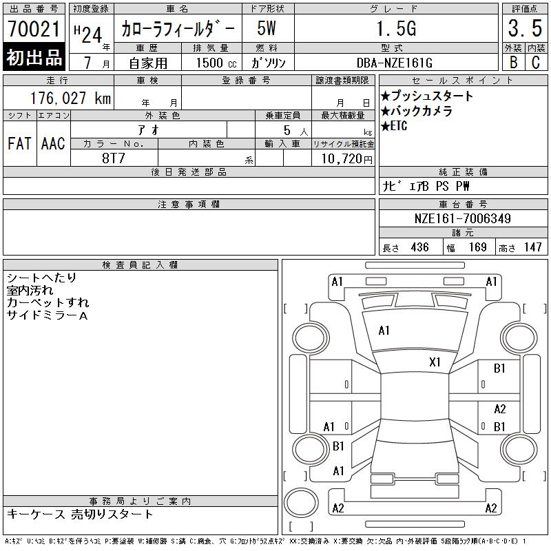 TOYOTA COROLLA FIELDER - лот 70021