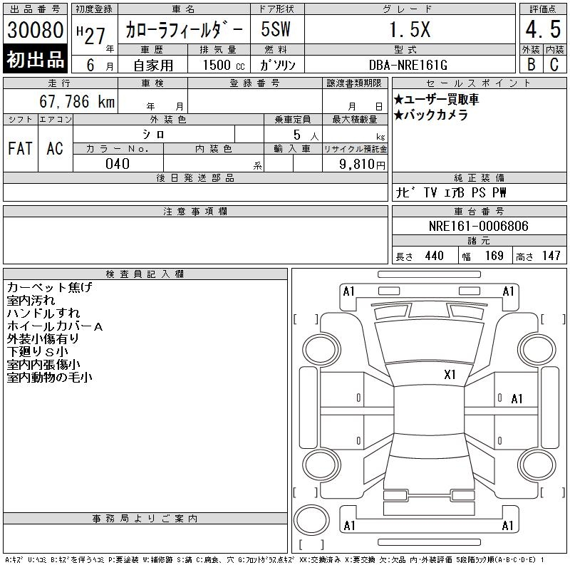 TOYOTA COROLLA FIELDER - лот 30080