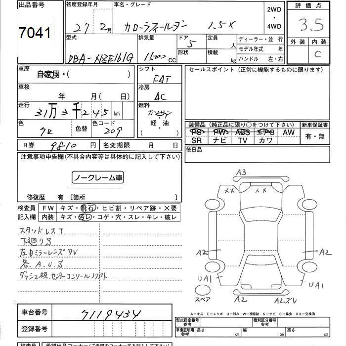 TOYOTA COROLLA FIELDER - лот 7041