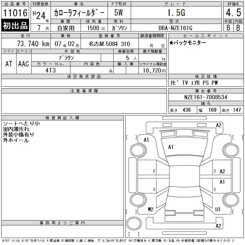 TOYOTA COROLLA FIELDER - лот 11016