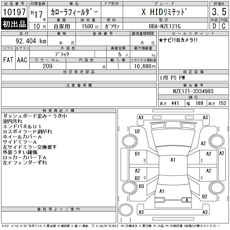 TOYOTA COROLLA FIELDER - лот 10197