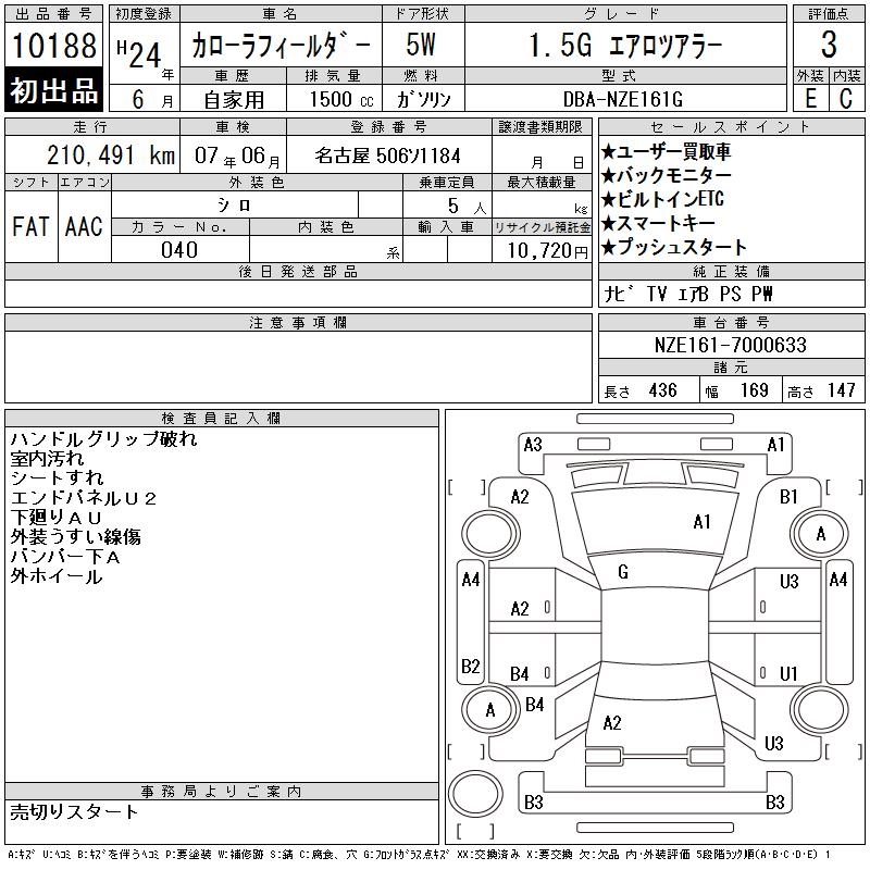 TOYOTA COROLLA FIELDER - лот 10188