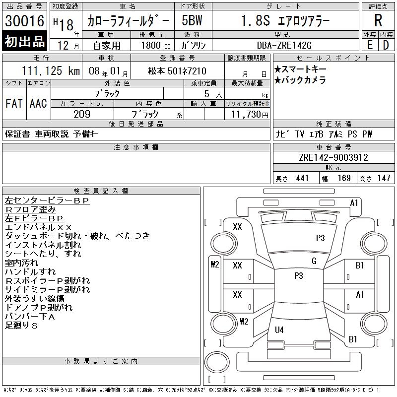 TOYOTA COROLLA FIELDER - лот 30016