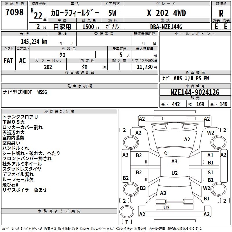 TOYOTA COROLLA FIELDER - лот 7098