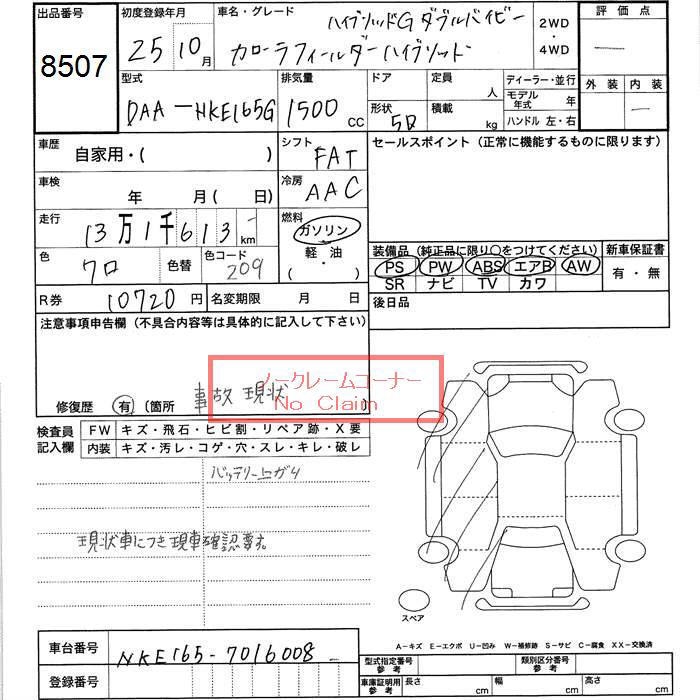 TOYOTA COROLLA FIELDER - лот 8507