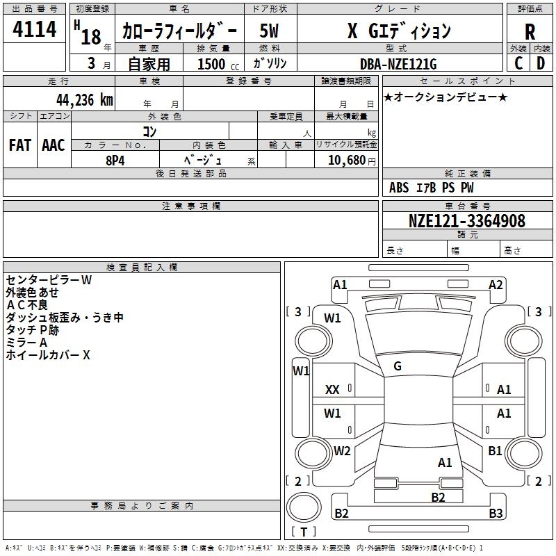 TOYOTA COROLLA FIELDER - лот 4114