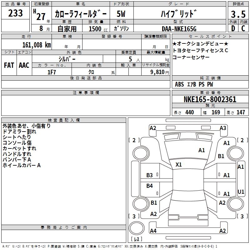 TOYOTA COROLLA FIELDER - лот 233