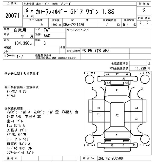 TOYOTA COROLLA FIELDER - лот 20071