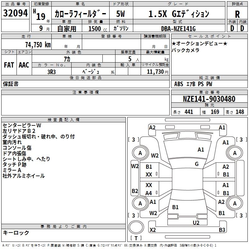 TOYOTA COROLLA FIELDER - лот 32094