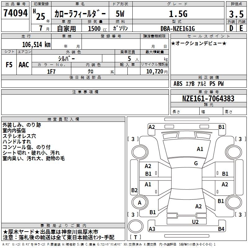 TOYOTA COROLLA FIELDER - лот 74094