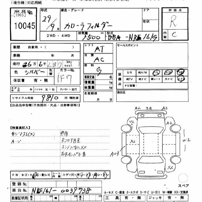 TOYOTA COROLLA FIELDER - лот 10045