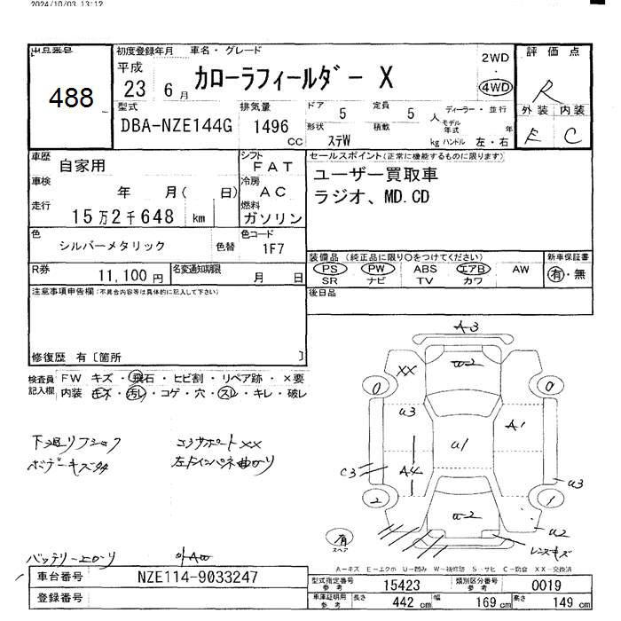TOYOTA COROLLA FIELDER - лот 488