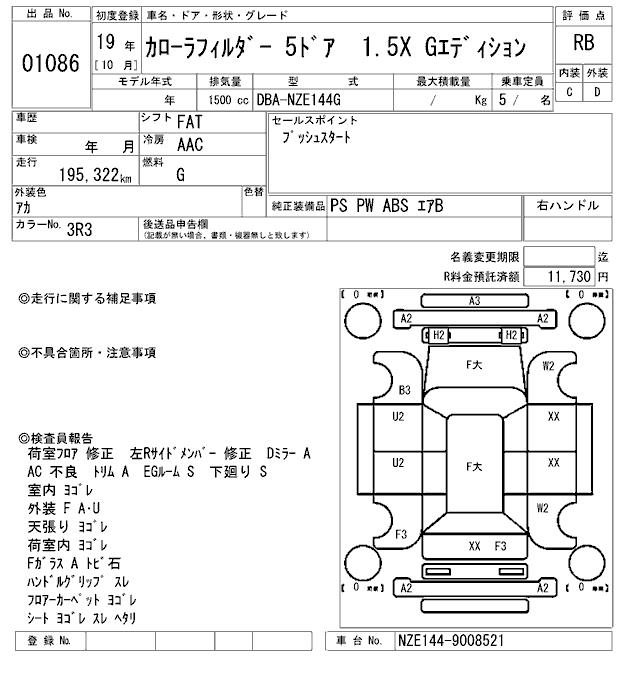 TOYOTA COROLLA FIELDER - лот 1086