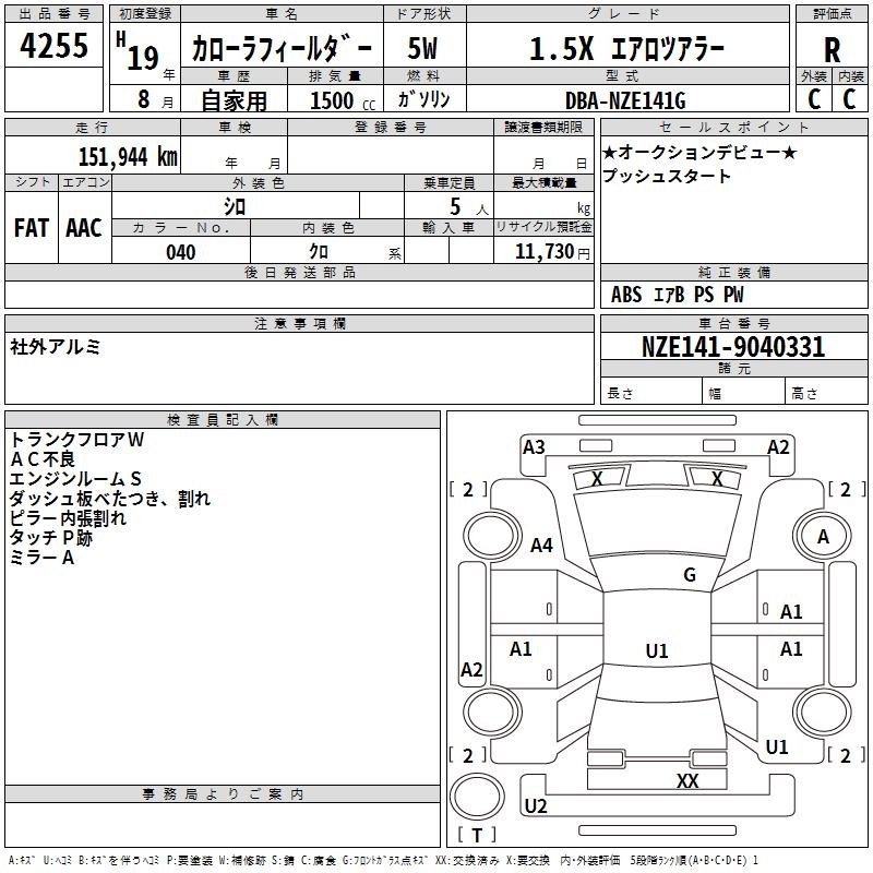TOYOTA COROLLA FIELDER - лот 4255