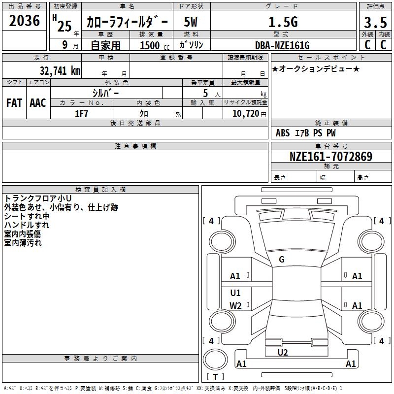 TOYOTA COROLLA FIELDER - лот 2036
